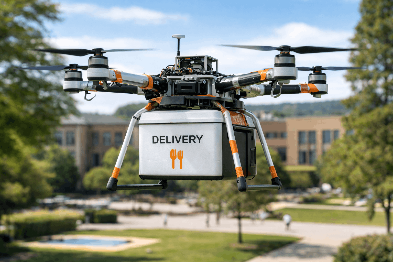 Because the drone is fully electric, it reduces the need for ground delivery vehicles and helps decrease traffic congestion and emissions within campus areas. While the initial application focuses on food delivery from restaurants to student locations, the system is being designed as a flexible platform that can later support additional services such as document delivery, library logistics, and emergency supply transport. Through this development, we aim to demonstrate how autonomous drones can transform everyday logistics in modern campus environments.